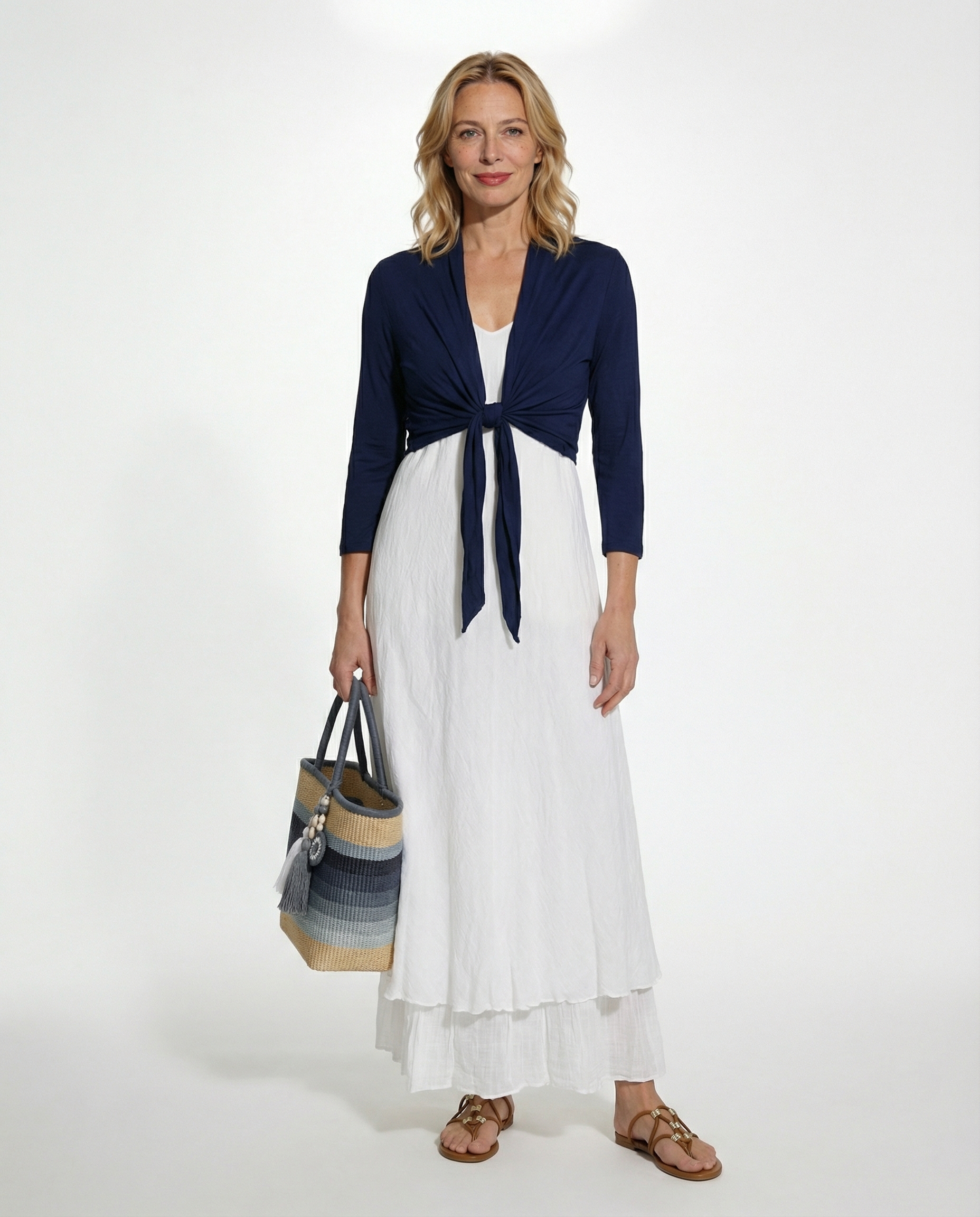 Der Bolero-Cardigan überzeugt durch seine edle Verarbeitung und das hochwertige Material aus weicher Viskose mit Elasthan. Der offene Schnitt ermöglicht verschiedene Tragevarianten – entweder vorne gebunden für einen femininen Look oder locker im Rücken für einen lässigen Stil. Die dezente Crinkle-Optik verleiht dem Bolero eine elegante Leichtigkeit und macht ihn ideal für festliche Anlässe sowie den Alltag. Kombinieren Sie ihn über einem ärmellosen Kleid oder zu einer Bluse und Jeans für einen modernen, trendbewussten Look.