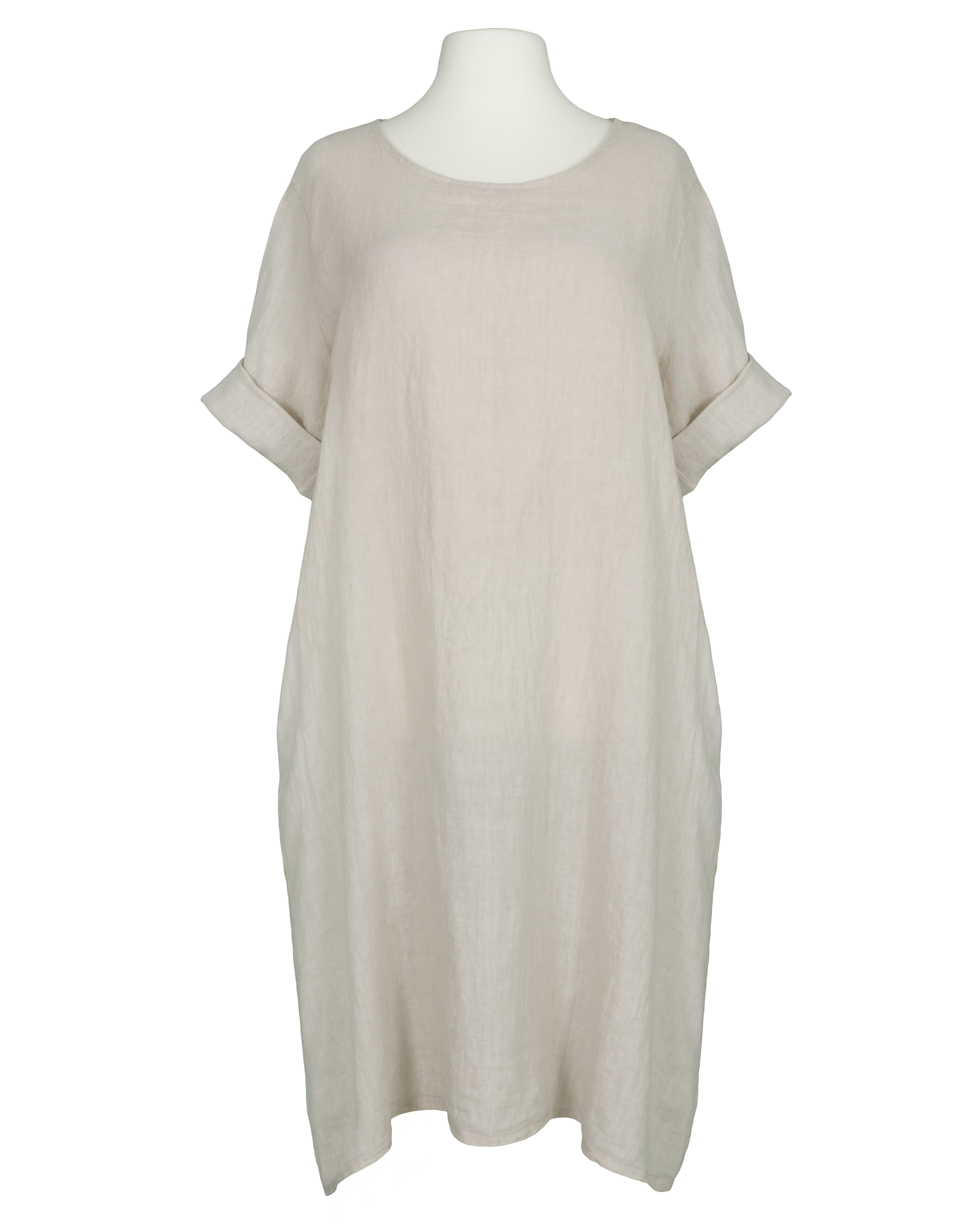 Dieses Leinenkleid überzeugt mit einer schlichten, tragbaren Form, die sich vielseitig kombinieren lässt. Der gerade Schnitt sorgt für eine ruhige Silhouette und unterstützt den entspannten Gesamtlook. Krempelbarer Halbarm und seitliche Eingrifftaschen ergänzen das Modell praktisch und alltagstauglich. Reines Leinen trägt sich angenehm leicht und passt sehr gut in eine sommerliche Garderobe.
