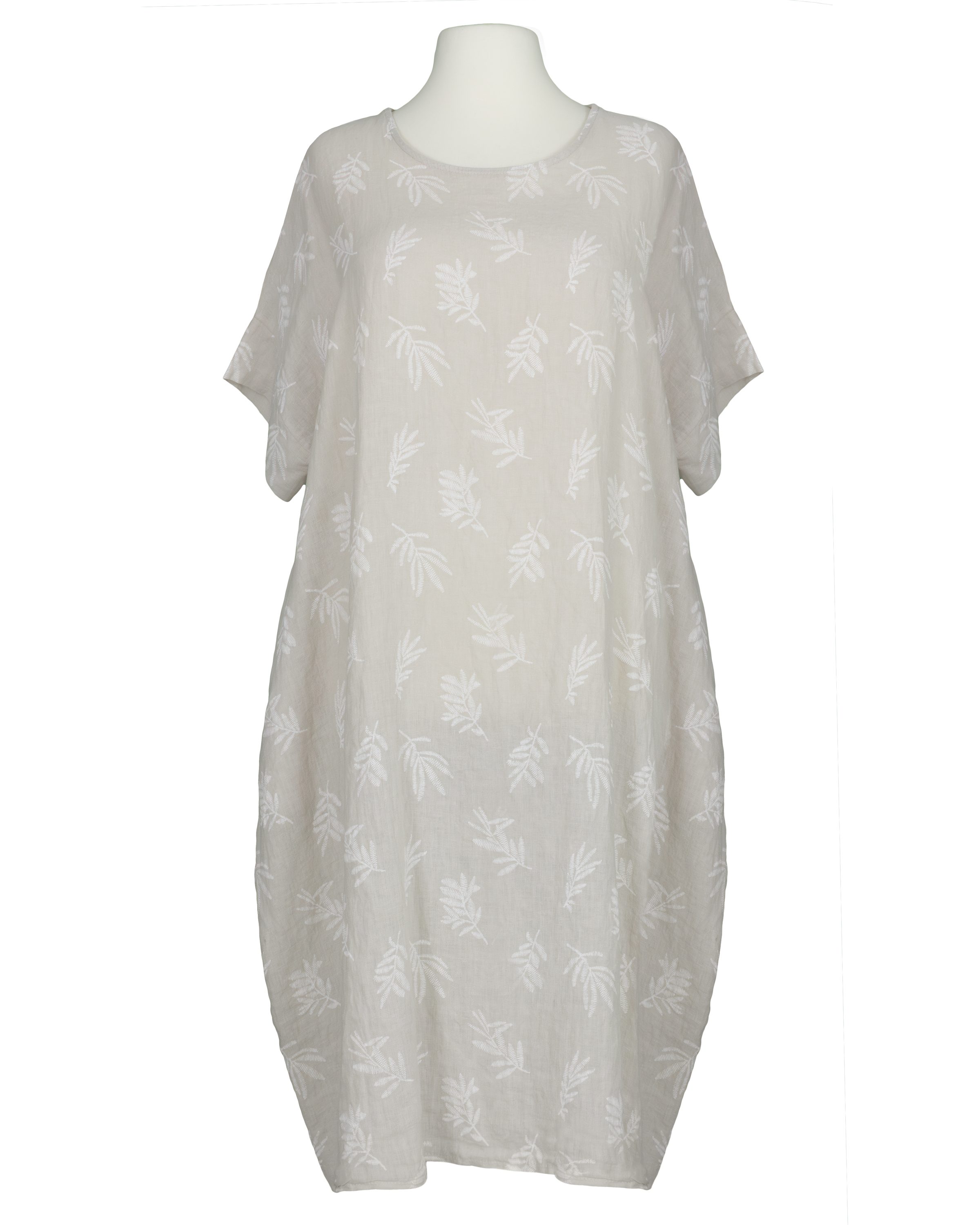 Dieses Kleid aus reinem Leinen verbindet natürliche Eleganz mit hohem Tragekomfort und ist damit ein unkompliziertes Lieblingsstück für entspannte und stilvolle Outfits. Der locker fallende Ballonschnitt sorgt für eine figurfreundliche Silhouette und bietet angenehme Bewegungsfreiheit, während der Rundhalsausschnitt und die kurzen angeschnittenen Ärmel dem Design eine moderne, ruhige Linie verleihen. Der Allover-Print lockert die Optik auf und setzt einen stilvollen Akzent, ohne aufdringlich zu wirken. Praktische seitliche Eingrifftaschen ergänzen das Design und machen das Kleid auch im Alltag besonders angenehm zu tragen. Die luftige Leinenqualität liegt angenehm auf der Haut und unterstreicht den natürlichen Charakter des Modells. Ob im Alltag, auf Reisen oder bei sommerlichen Treffen mit Freunden - dieses Kleid wirkt stets gepflegt und zugleich entspannt.