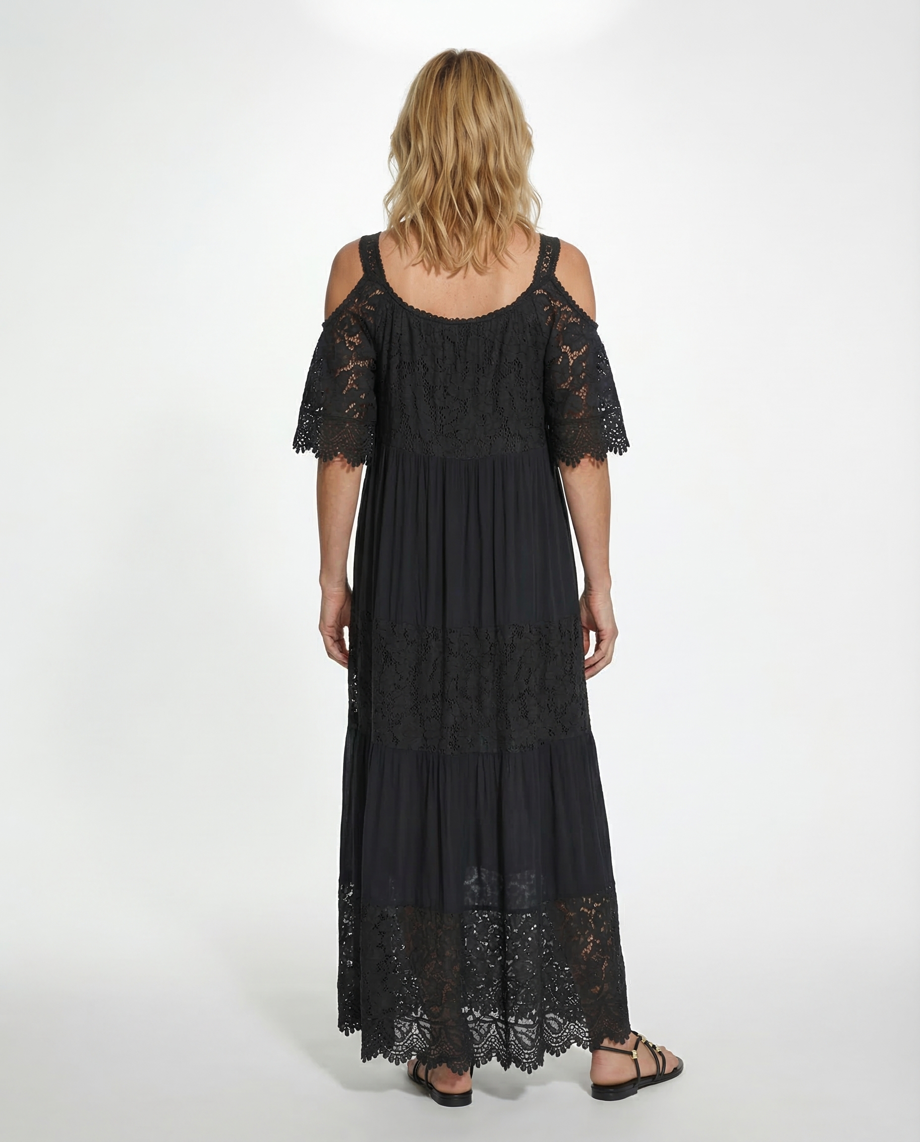Maxikleid Cold-Shoulder-Ausschnitt in  schwarz von Made in Italy (Bild 4)