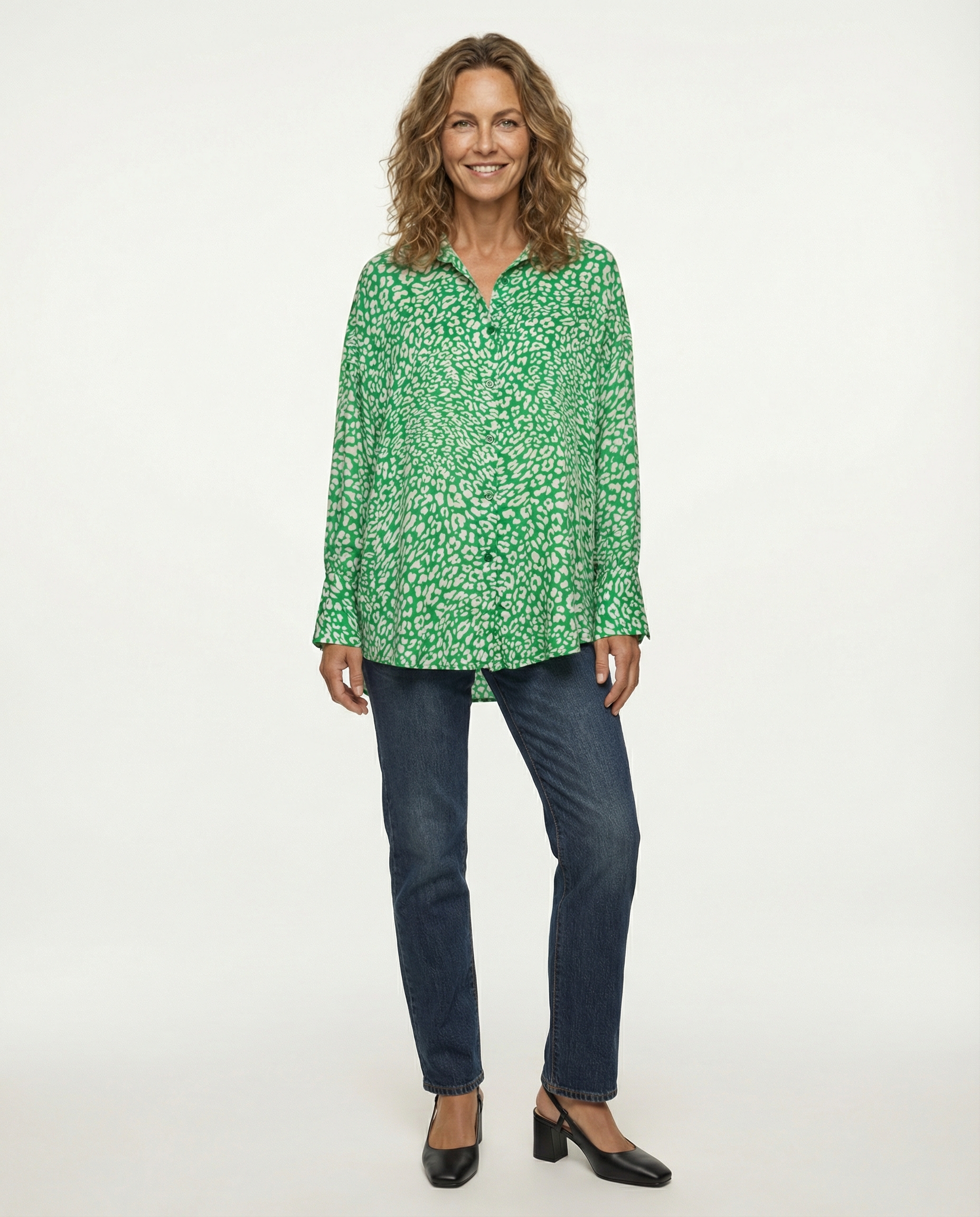 Satinbluse mit Seide Leo Print in  grün von Made in Italy (Bild 1)