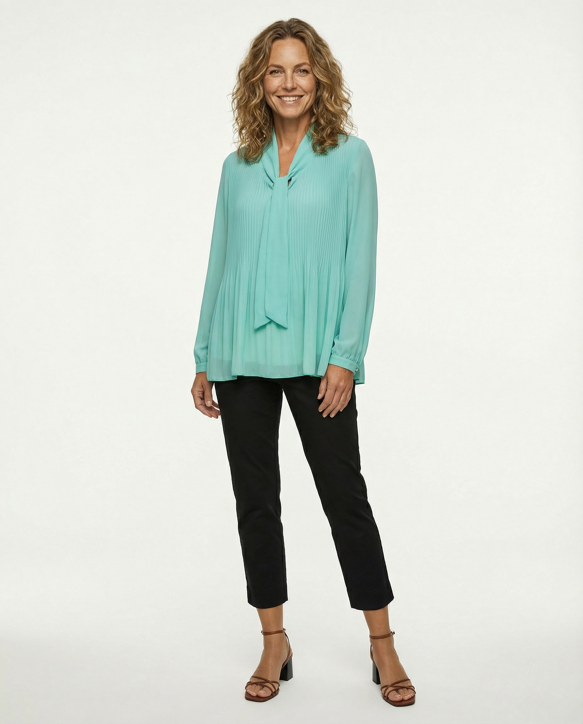 Schluppenbluse mit Plissee in aqua