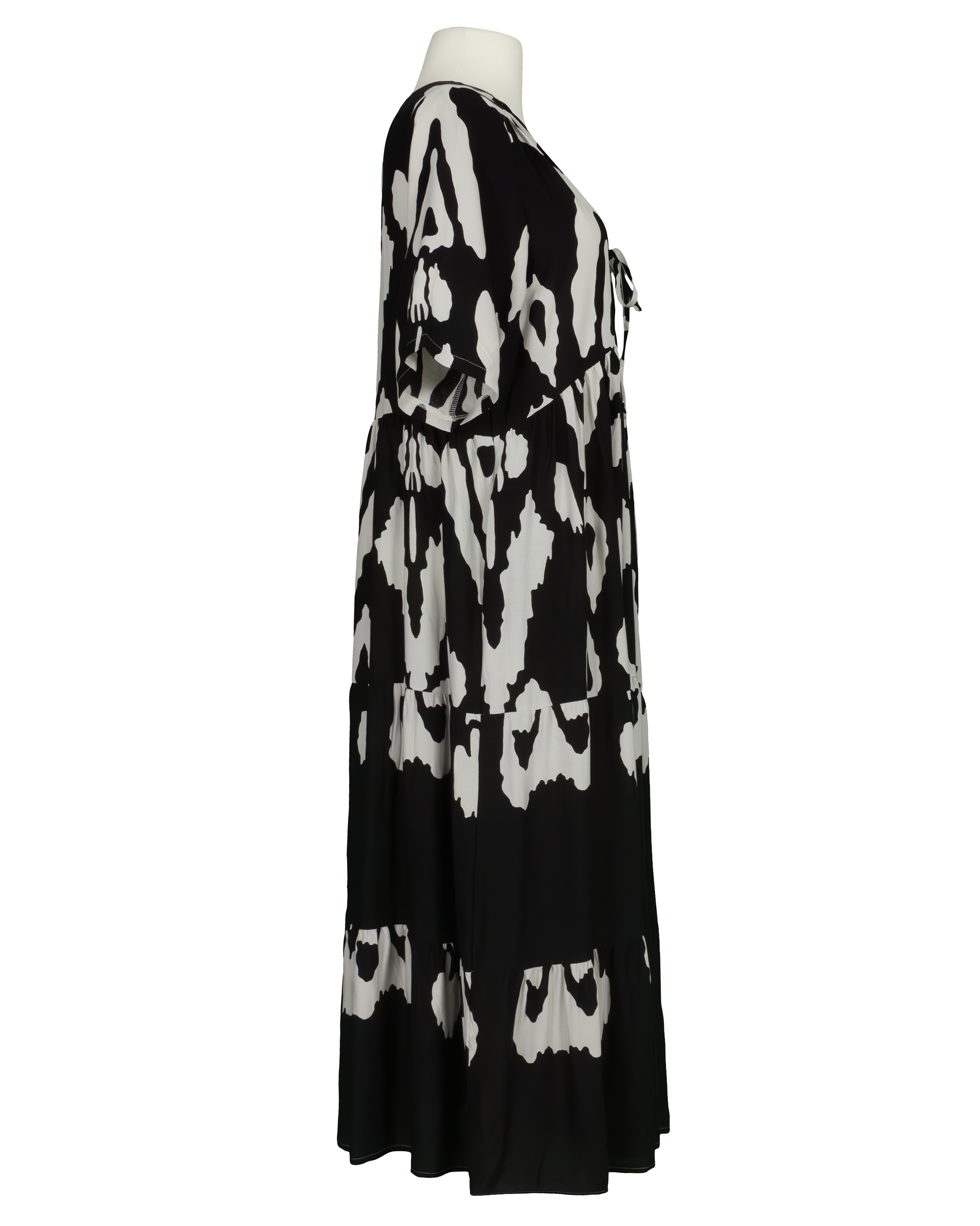 Dieses Tunika Kleid in Schwarz-Weiß kombiniert ausdrucksstarken Allover-Print mit einer femininen A-Linie und fließendem Fall. Die luftige Viskosequalität macht es zu einem angenehmen Begleiter an warmen Tagen. Praktische Eingrifftaschen unterstreichen den alltagstauglichen Charakter, während der V-Ausschnitt mit Bindebändchen für eine verspielte Note sorgt. Die ungefütterte Verarbeitung trägt sich angenehm leicht und macht das Kleid zur perfekten Wahl für die Sommergarderobe. Ein vielseitiger Favorit in der Damenmode – entspannt, modisch und stilvoll zugleich.
